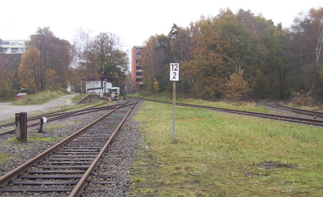 In engem Bogen verläßt hier rechts im Bild die Anschlußstrecke in den Glinder Forst den Bahnhof Glinde. 30.10.2002