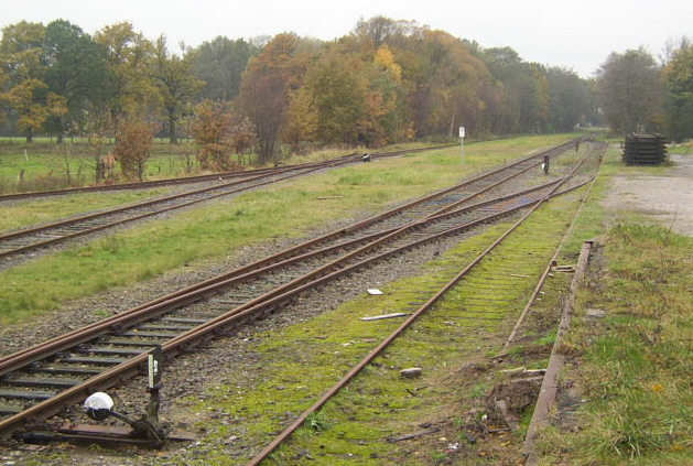 Der Blick von der Laderampe offenbart die Weitläufigkeit der Anlagen des Bahnhofs Glinde. Sie zeugt von seiner einstigen Bedeutung, als noch kriegswichtige Rüstungsgüter im Kurbelwellenwerk der Firma Krupp hergestellt wurden. Die Anschlußstrecke dorthin verläßt den Bahnhof am linken Bildrand. Es ist das hintere der Gleise.