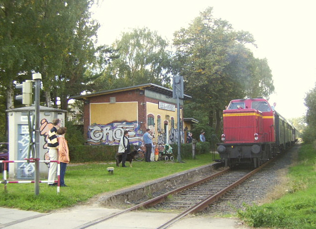 Nur ganz selten fanden bzw. finden Sonderzüge auf die Strecke nach Glinde und bedienen auch den Haltepunkt Am Wochenende 20./21.09.2003 war ein Zug mit Aufnahme vom 21.09.2003 Aufnahme: Axel Tomforde, Hamburg