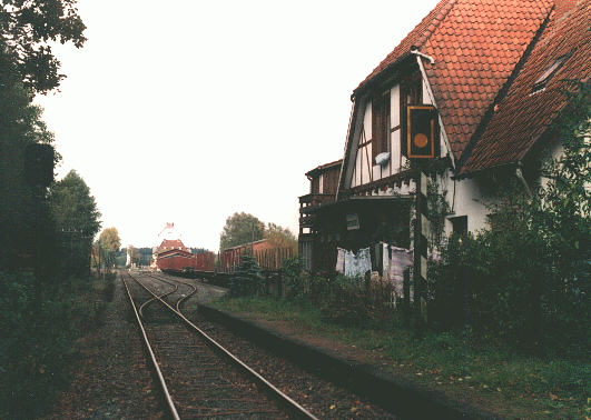 Wo einst der Bahnhofsvorsteher auf "seine" Züge wartete, hängen nunmehr die derzeitigen privaten Bewohner des Hauses ihre Wäsche auf. 09.10.1993