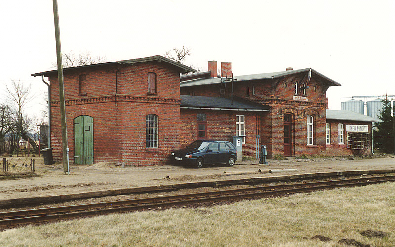 Die Architektur des Empfangsgebäudes in Klein Lunow zeigt den landschafts- und streckentypischen Backsteinstil.