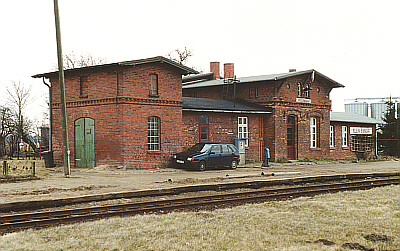 Die Architektur des Empfangsgebäudes in Klein Lunow zeigt den landschafts- und streckentypischen Backsteinstil. 13.04.1996 Für Ansicht in doppelter Größe das Bild anklicken! |