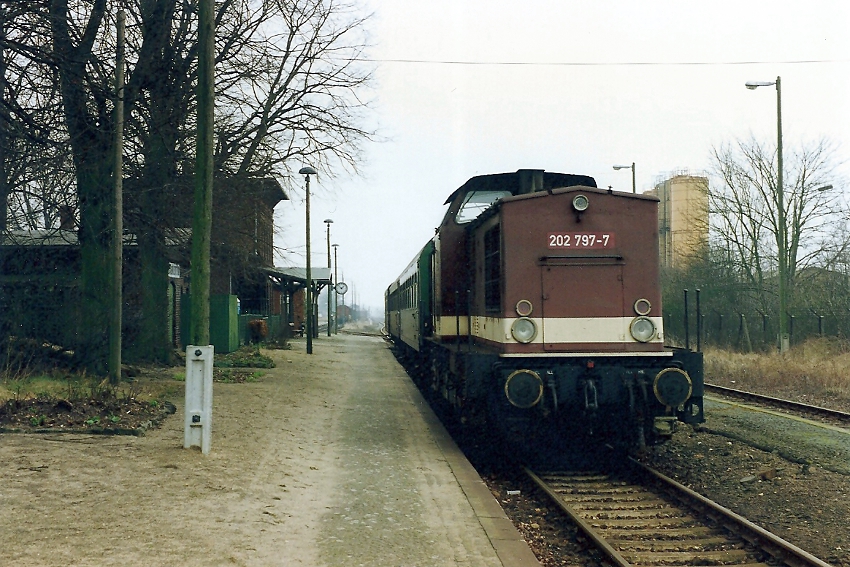 202 797 der Deutschen Reichsbahn hat am 22.02.1992 N 9368 von Hagenow Land nach Zarrentin gebracht.